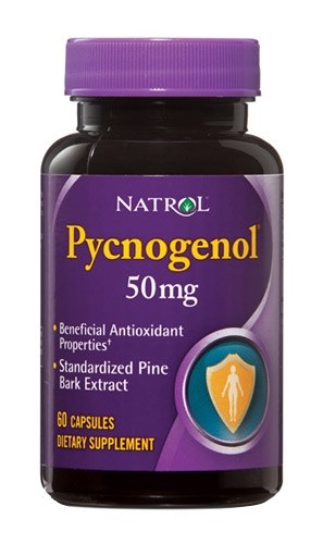 Natrol Pycnogenol 50mg 30 caps — концентрированный натуральный экстракт из коры сосны Pinus maritima, которая растет в лесах на юге-западе Франции. Natrol Pycnogenol 50mg 30 caps — мощный растительный антиоксидант, содержит в большом количестве уникальные биофлавоноиды процианидин и проантоцианидин, которые предохраняют мозг от повреждающего действия свободных радикалов, предотвращают возникновение некоторых сердечно-сосудистых заболеваний. Natrol Pycnogenol 50mg 30 caps укрепляет стенки артерий и капилляров, а также способствует омоложению кожи. Пикногенол высоко эффективен как антиоксидант, он в 50 раз эффективнее витамина Е и в 20 раз мощнее витамина С по антиоксидантным свойствам. Растительные биофлавоноиды практически нерастворимы в воде. Пикногенол же является водорастворимым соединением (его получают путем экстракции коры сосны в теплой воде под давлением), который хорошо всасывается в ЖКТ и поэтому высоко биодоступен. Пикногенол эффективен как средство, укрепляющее капилляры. Он действует на непрочные капилляры: укрепляет их коллагеновую структуру, усиливая действие витамина С в мембранах капилляров. Пикногенол достигает коллагенового подкожного слоя организма. Он свободно проходит через гематоэнцефалический барьер, реализуя антиокидантную защиту в центральной нервной системе. В этом заключается его принципиальное отличие от других известных антиоксидантов. Пикногенол препятствует развитию сердечно-сосудистых заболеваний, развивающихся при реакциях организма на стрессовые воздействия. Некоторые компоненты пикногенола демонстрируют антивирусное действие, противовоспалительную активность, антипролиферативное, антимутагенное действие и защищают кожу от повреждающего воздействия ультрафиолетового облучения. Пикногенол как антиоксидант эффективен при воспалительных заболеваниях и старении. Во время воспаления выделяются ферменты коллагеназа и эластаза, которые повреждают коллагеновые и эластические волокна кожи. Исследования показали, что компоненты пикногенола присоединяются к кожным протеинам и защищают их от разрушения под воздействием этих ферментов. Гиалуронидаза — мукополисахаридный расщепляющий фермент, увеличивает проницаемость капилляров и других кровеносных сосудов, в том числе при воспалении. Катехин и проантоцианидин В2, входящие в состав пикногенола, угнетают активность гиалуронидазы. Таким способом, пикногенол защищает гиалуроновую кислоту, являющуюся основным структурным компонентом соединительной ткани, и способствует образованию новых неповрежденных соединительно-тканных структур в районе лица и других участков тела. Он также восстанавливает эластичность, гибкость и прочность соединительной ткани. Использование пикногенола у людей продемонстрировало положительные эффекты по снижению риска более чем 50 заболеваний, связанных с воздействием свободных радикалов, в том числе сердечно-сосудистые болезни, воспалительные заболевания суставов, хронические вирусные инфекции (герпетические), нарушения зрения, преждевременное старение и др. Результаты многочисленных клинических исследований пикногенола свидетельствуют об улучшении на фоне его приема резистентности капилляров, прекращении болей и ночных судорог при варикозной болезни вен, его эффективности при диабетической ретинопатии (снижении кро