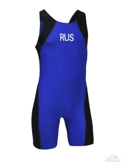 Оригинальная модель трико борцовского детского из матового полотна, представленная в синем цвете.